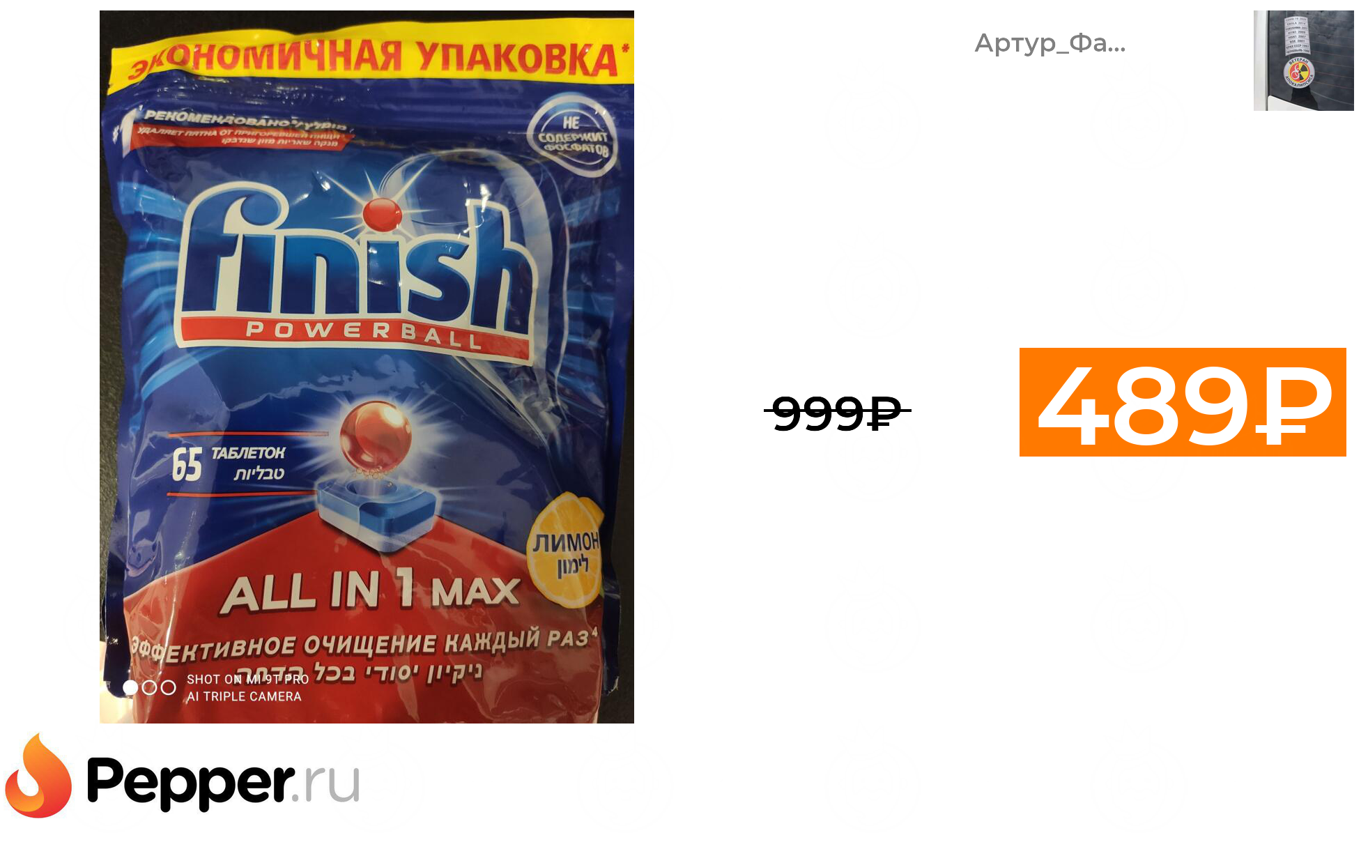 🔹[Уфа] Таблетки для посудомоечных машин Finish All in 1 Блеск и Защита, Лимон, 65 таблеток 489.99₽ ❗️🔥(везде от 999₽)