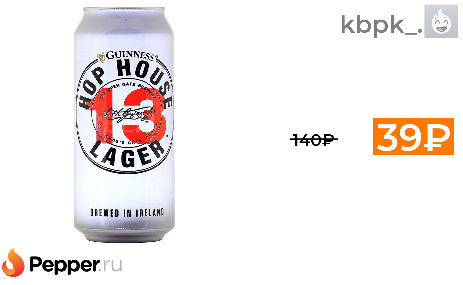 🔹[Кострома] Пиво Guinness Hop House 13 Lager, 0.44л, Ирландия 39₽ ❗️🔥(везде от 140₽)