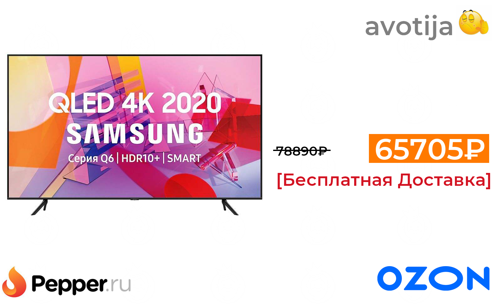 🔹Телевизор Samsung QE65Q60T (65", 4K, QLED) 65705₽ ❗️🔥(везде от 78890₽)