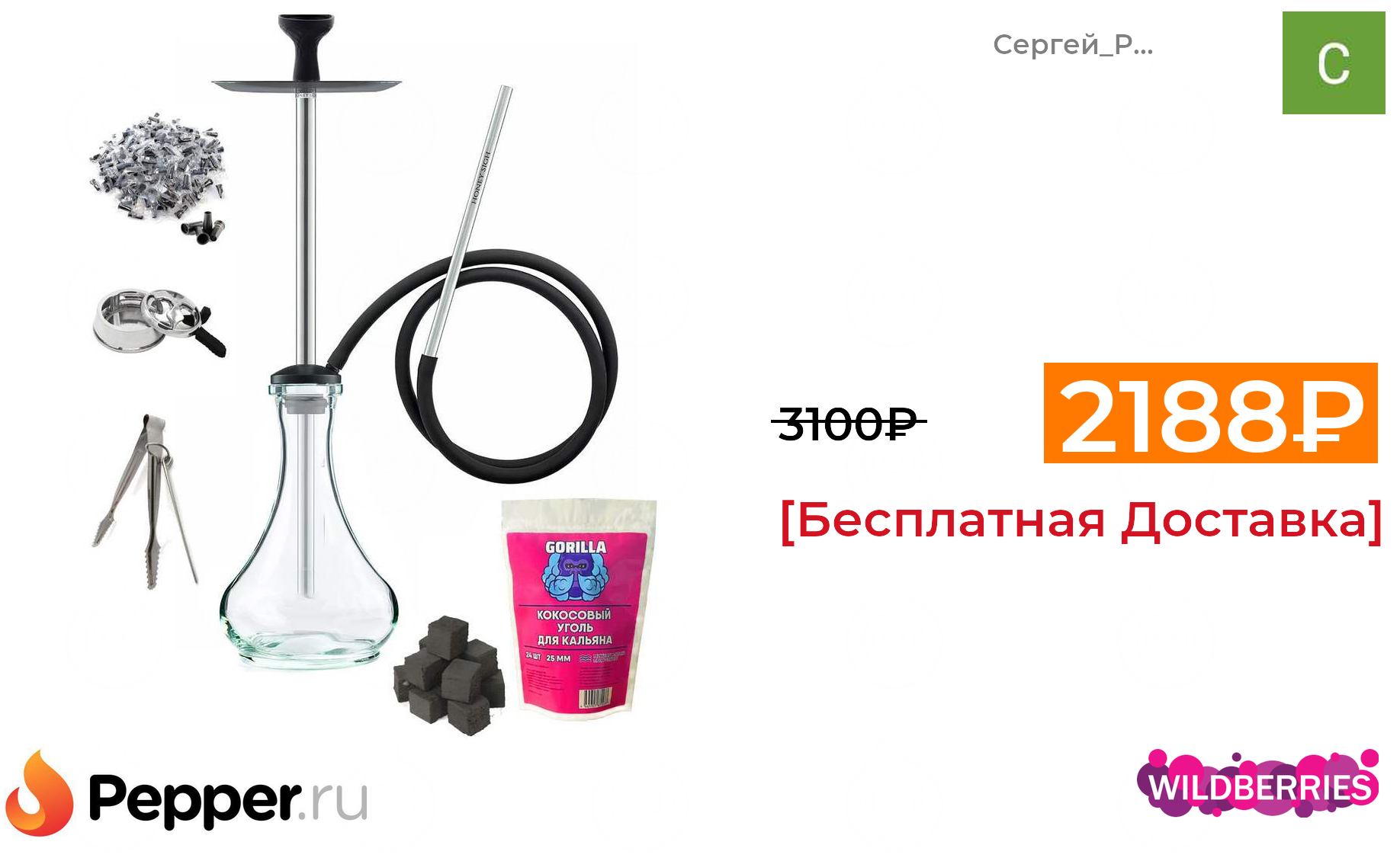 🔹"Honey Sigh" комплект: кальян + чаша + уголь + щипцы + мундштуки 2188₽ ❗️🔥(везде от 3100₽)