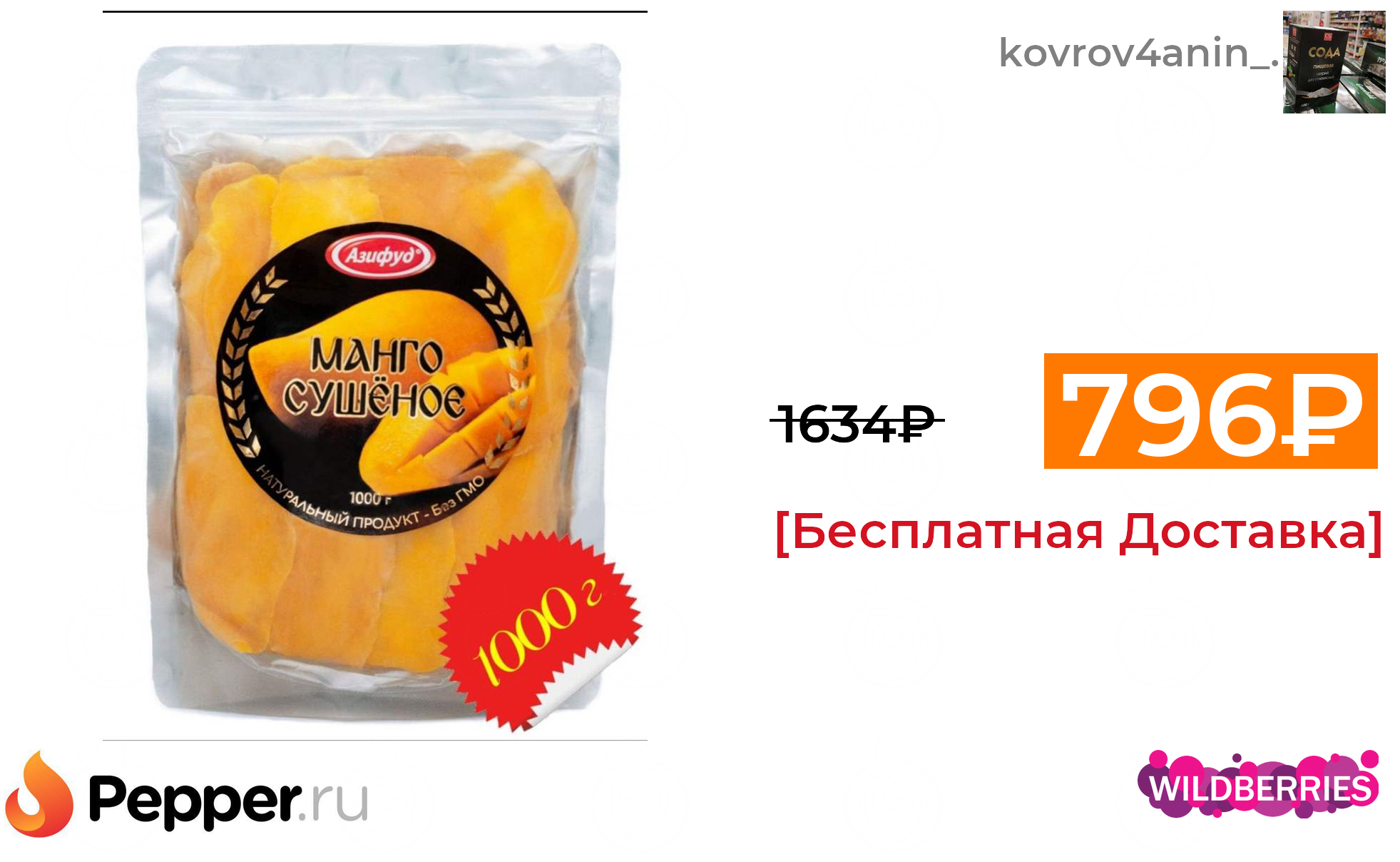 🔹Манго сушёное "Азифуд", 1 кг. 796₽ ❗️🔥(везде от 1634₽)