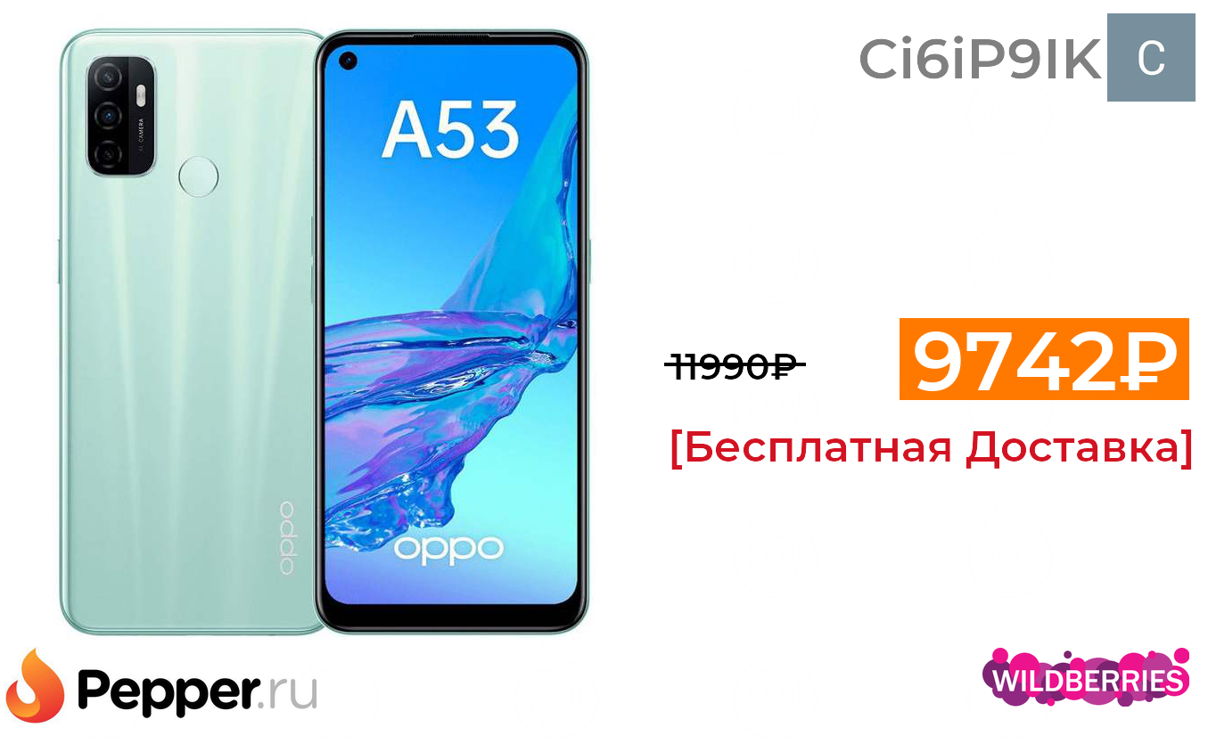 🔹Смартфон OPPO A53 4+64GB NFC, 5000 мАч, Type-C, Snap 460 9742₽ ❗️🔥(везде от 11990₽)