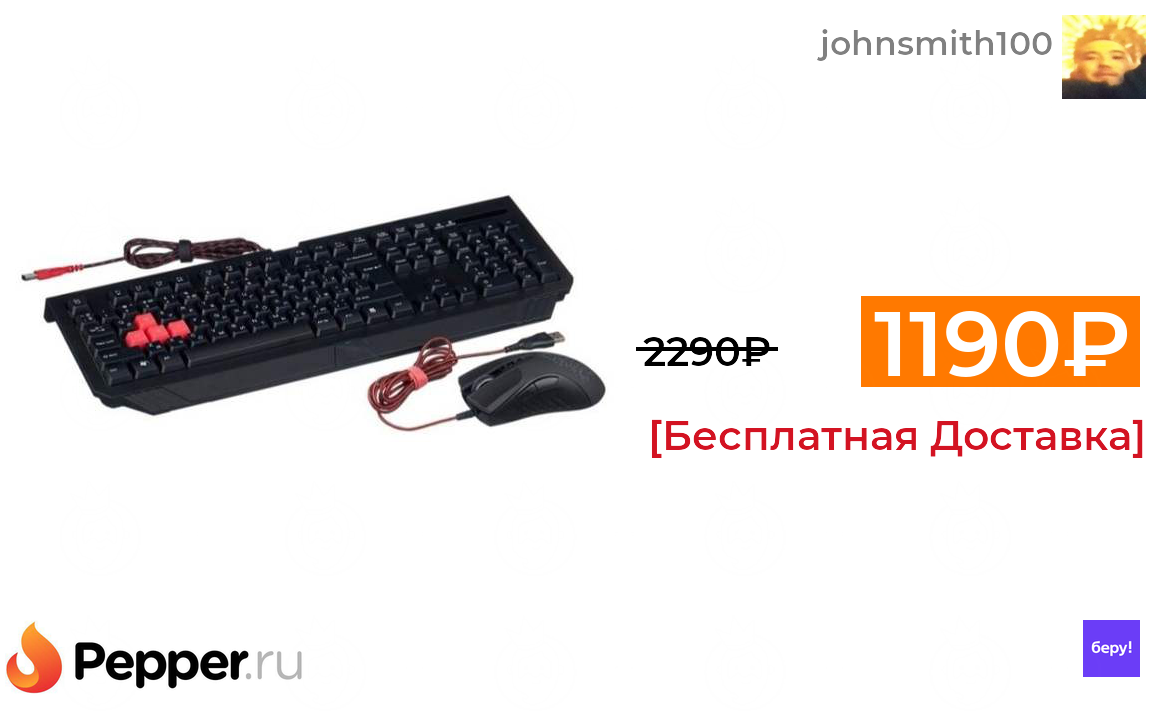 🔹Клавиатура + мышь A4Tech Bloody Q1500 1190₽ ❗️🔥(везде от 2290₽)