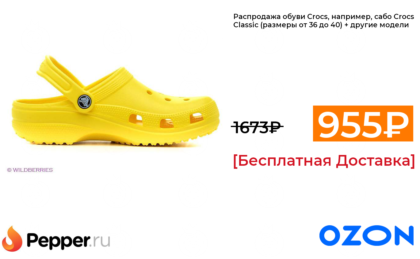 🔹Распродажа обуви Crocs, например, сабо Crocs Classic (размеры от 36 до 40) + другие модели 955₽ ❗️🔥(везде от 1673₽)