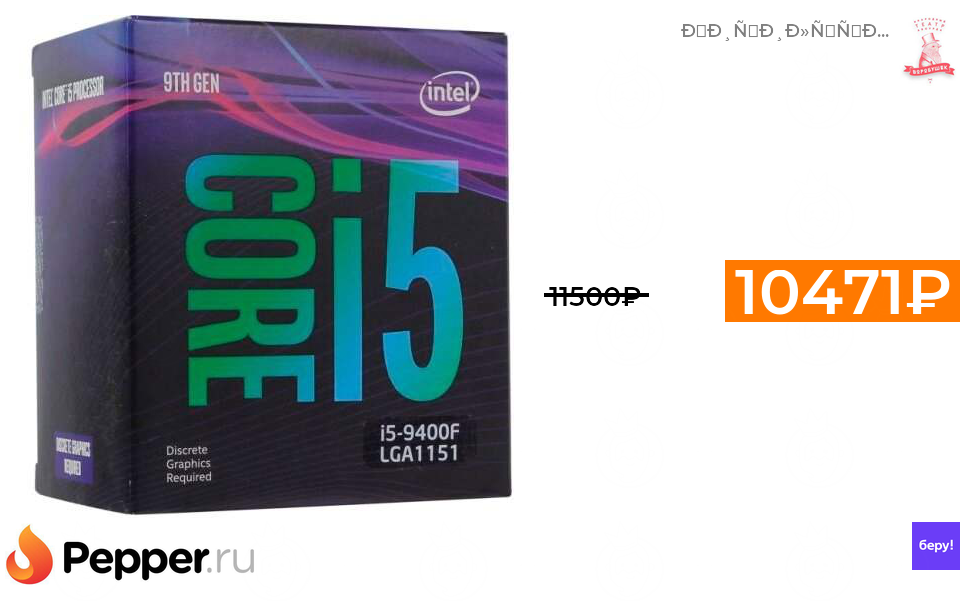🔹Процессор Intel Core i5-9400F BOX 10471₽ ❗️🔥(везде от 11500₽)