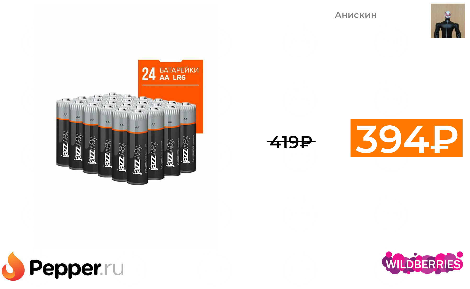 🔹Батарейки ААА или АА Jazzway Ultra Alkaline (24 шт., 16,4₽. за шт.) ❗️🔥(везде от 419₽)