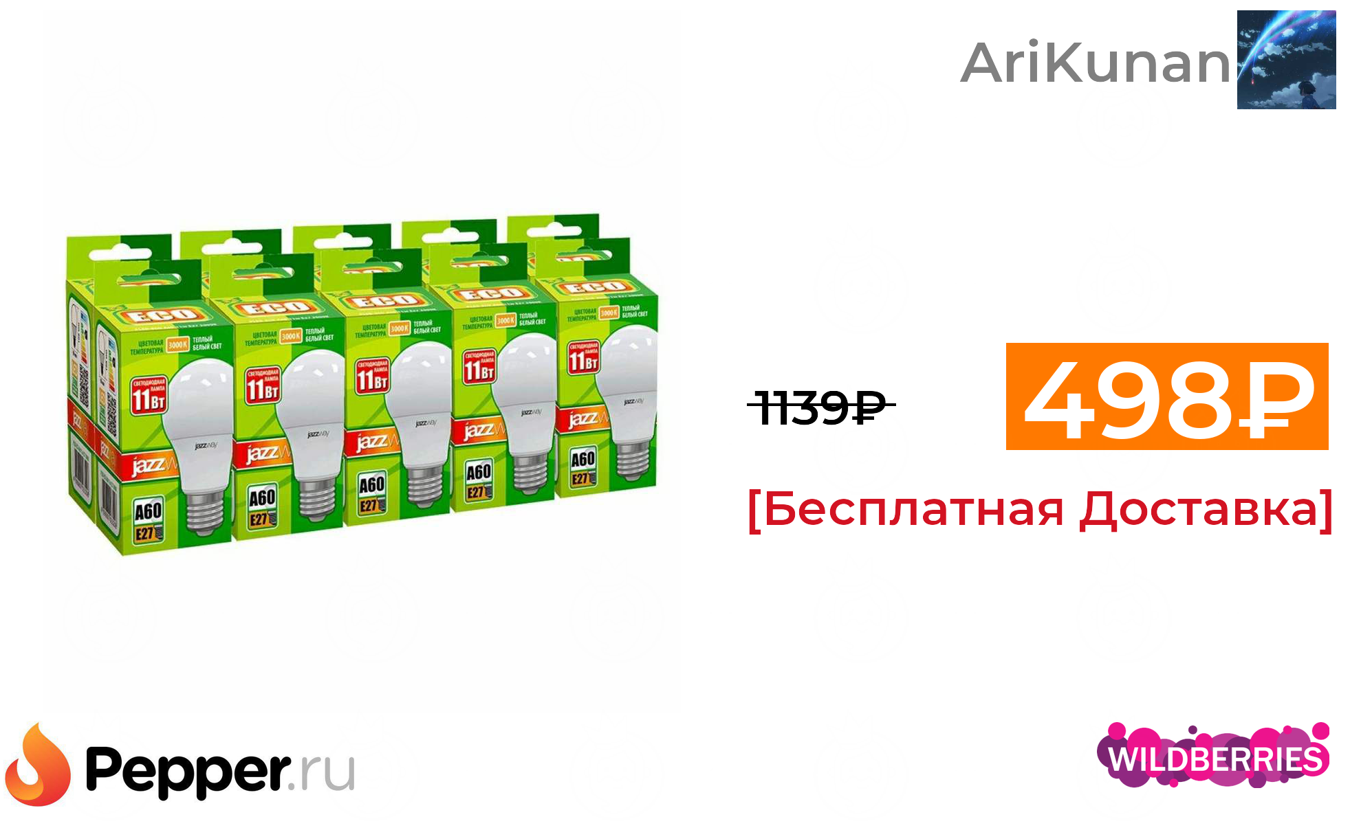 🔹Светодиодные лампочки jazzway 11W 3000k E27, 10 штук 498₽ ❗️🔥(везде от 1139₽)
