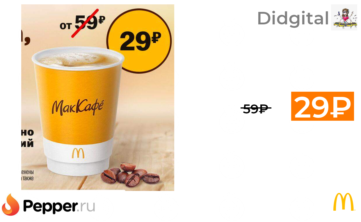 🔹Капучино 0,2л в Макдоналдс 29₽ ❗️🔥(везде от 59₽)