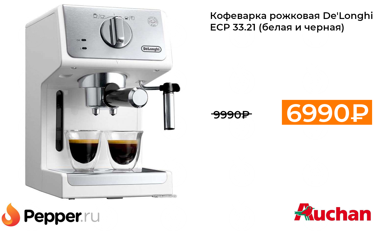 🔹Кофеварка рожковая De'Longhi ECP 33.21 (белая и черная) 6990₽ ❗️🔥(везде от 9990₽)