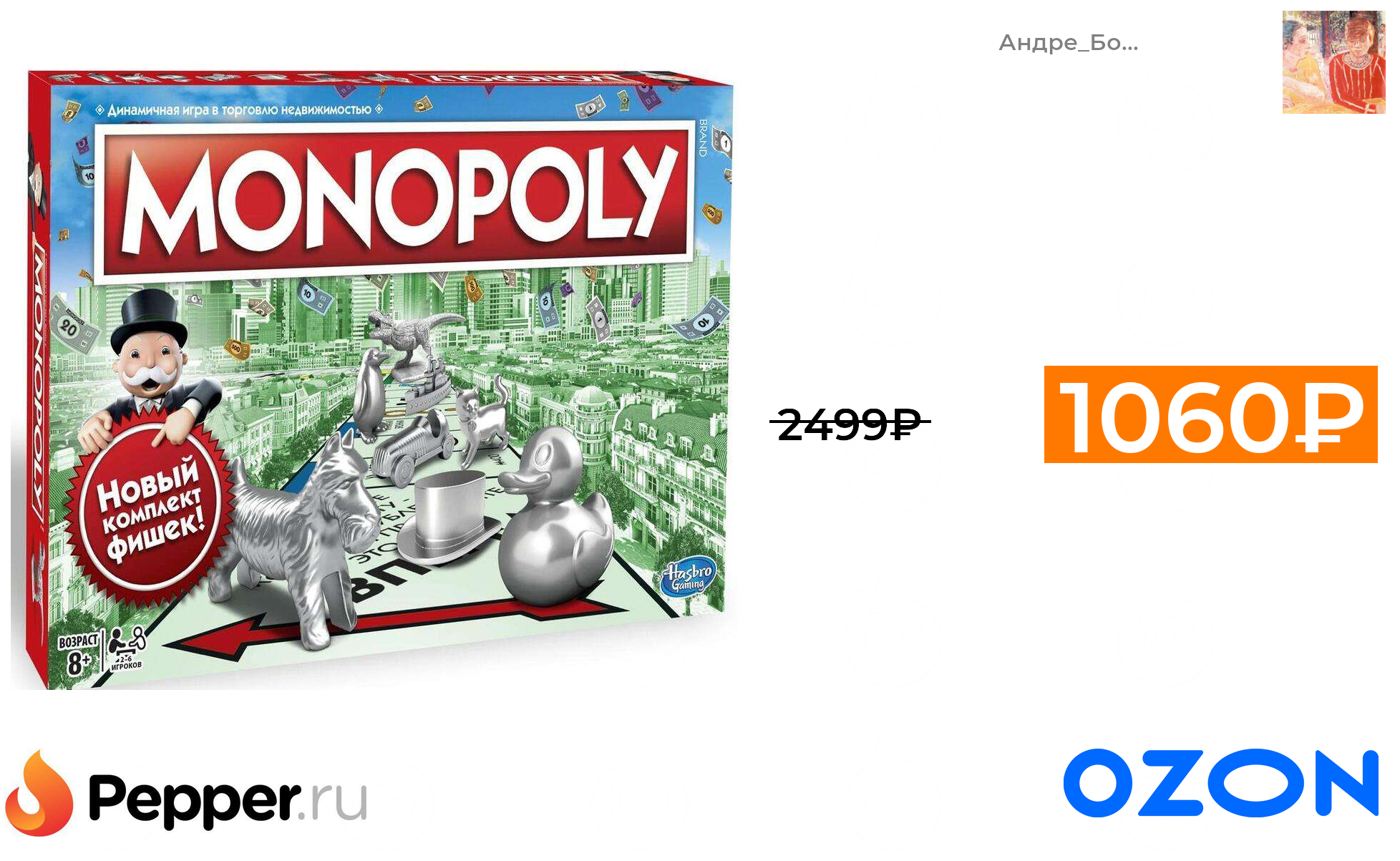 🔹Настольная игра Монополия. Классическая от Hasbro Games 1060₽ ❗️🔥(везде от 2499₽)