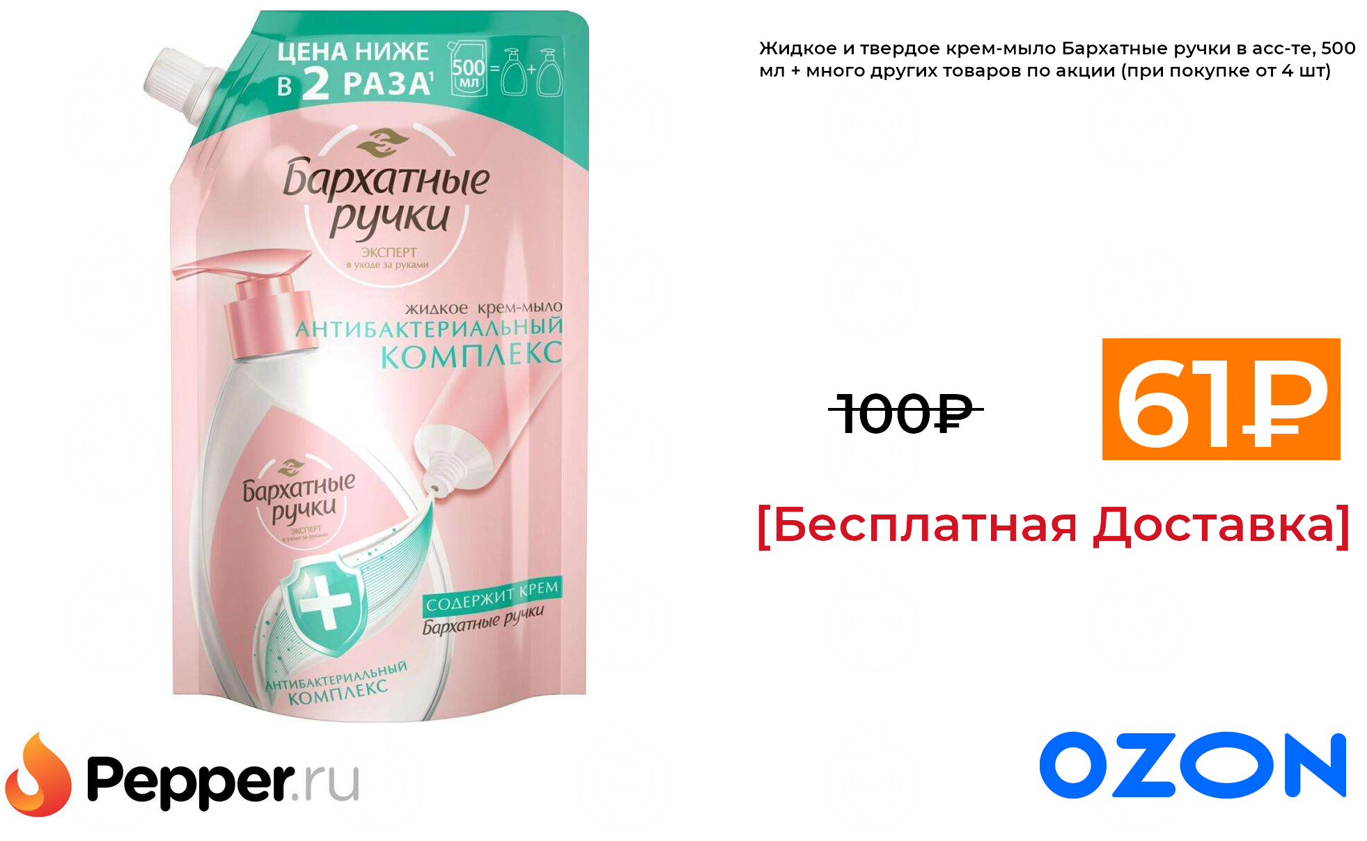 🔹Жидкое и твердое крем-мыло Бархатные ручки в асс-те, 500 мл + много других товаров по акции (при покупке от 4 шт) 61₽ ❗️🔥(везде от 100₽)