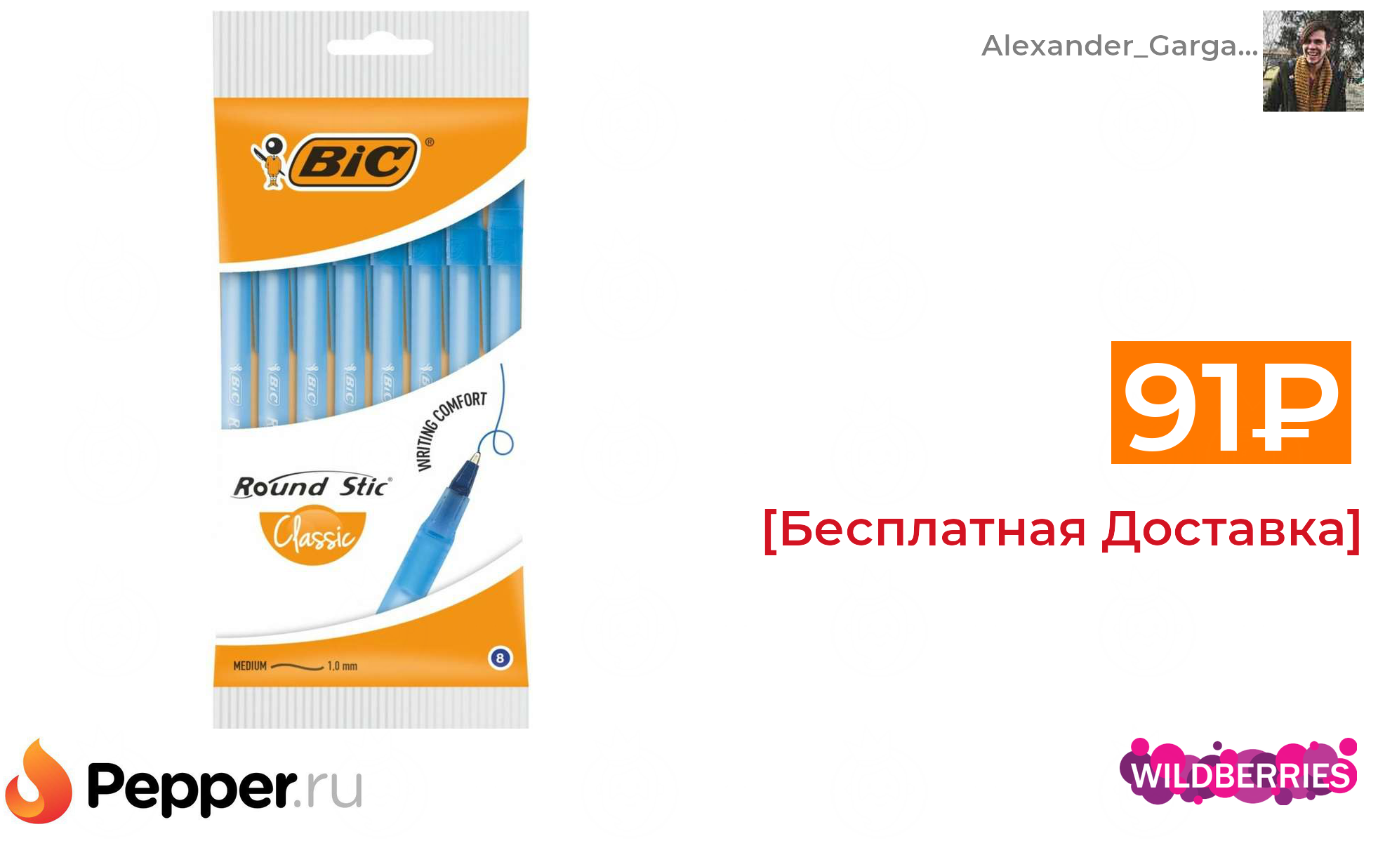 🔹Ручка BIC Round Stic, 8 шт (11p за штуку) 91₽ ❗️🔥
