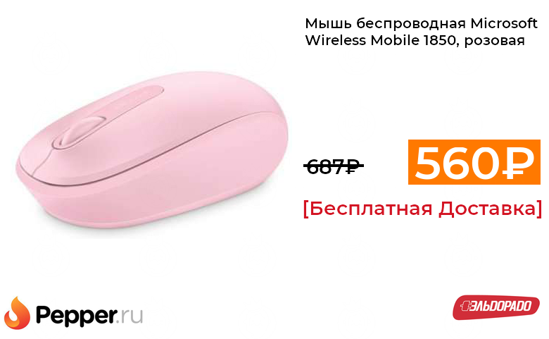 🔹Мышь беспроводная Microsoft Wireless Mobile 1850, розовая 560₽ ❗️🔥(везде от 687₽)
