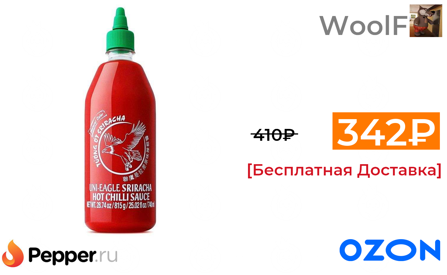 🔹Соус Шрирача Uni-Eagle 815 грамм, 56% перца чили 342₽ ❗️🔥(везде от 410₽)