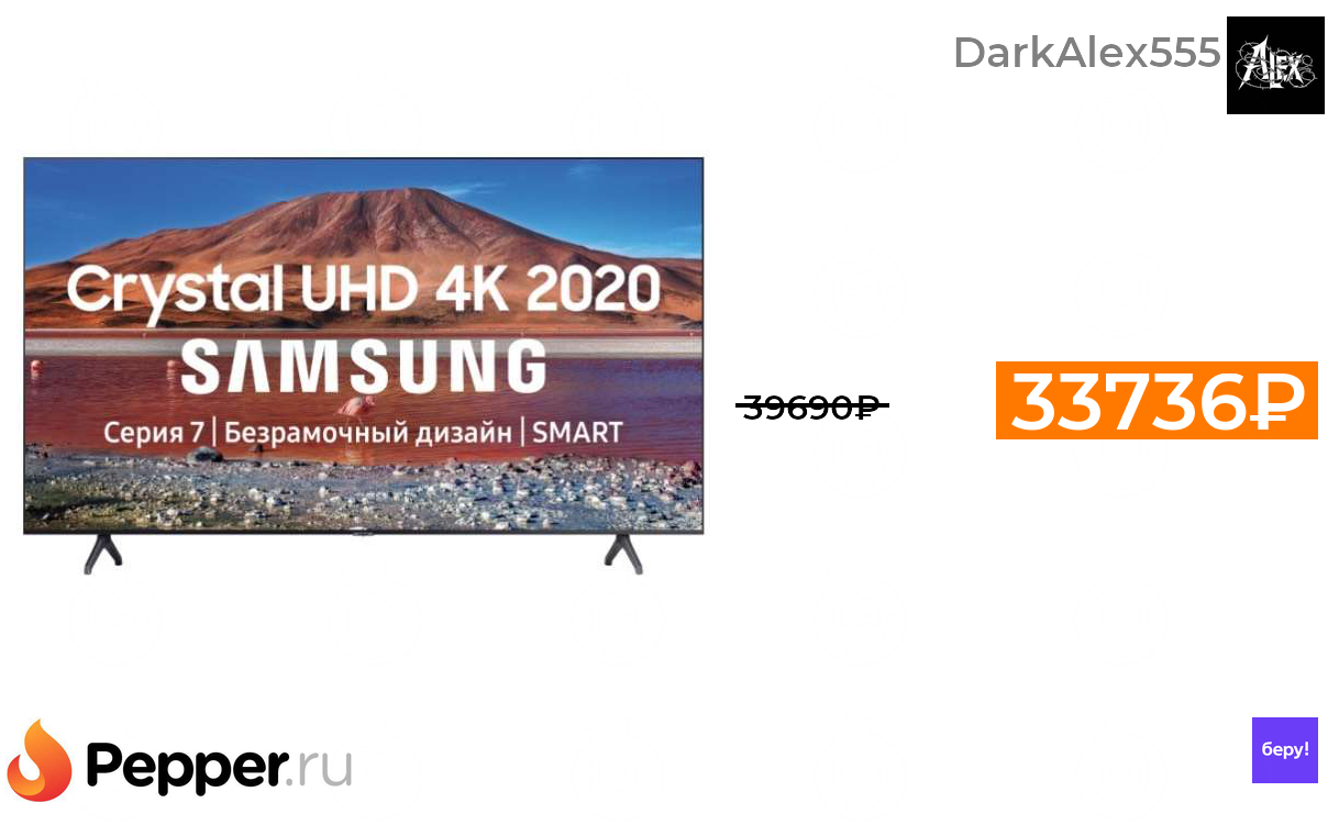 🔹4К 55" ТВ Samsung UE55TU7100U 33736₽ ❗️🔥(везде от 39690₽)