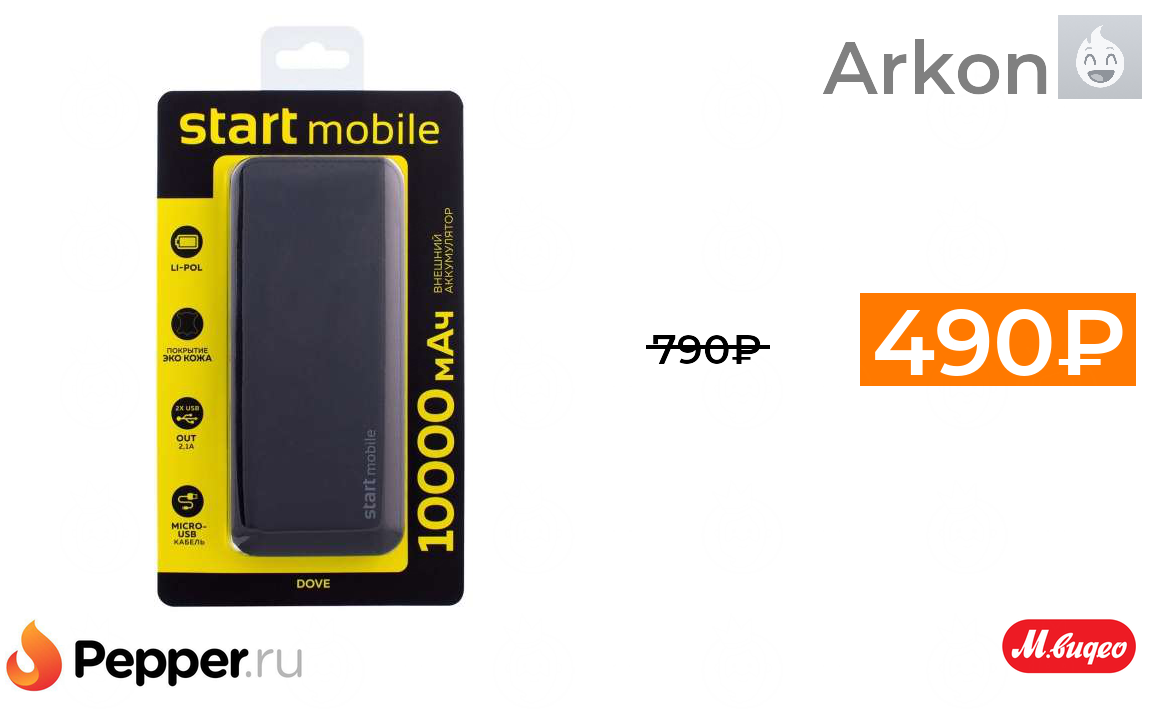 🔹Внешний аккумулятор Старт PPB DOVE P10S-B 10000 мАч 490₽ ❗️🔥(везде от 790₽)