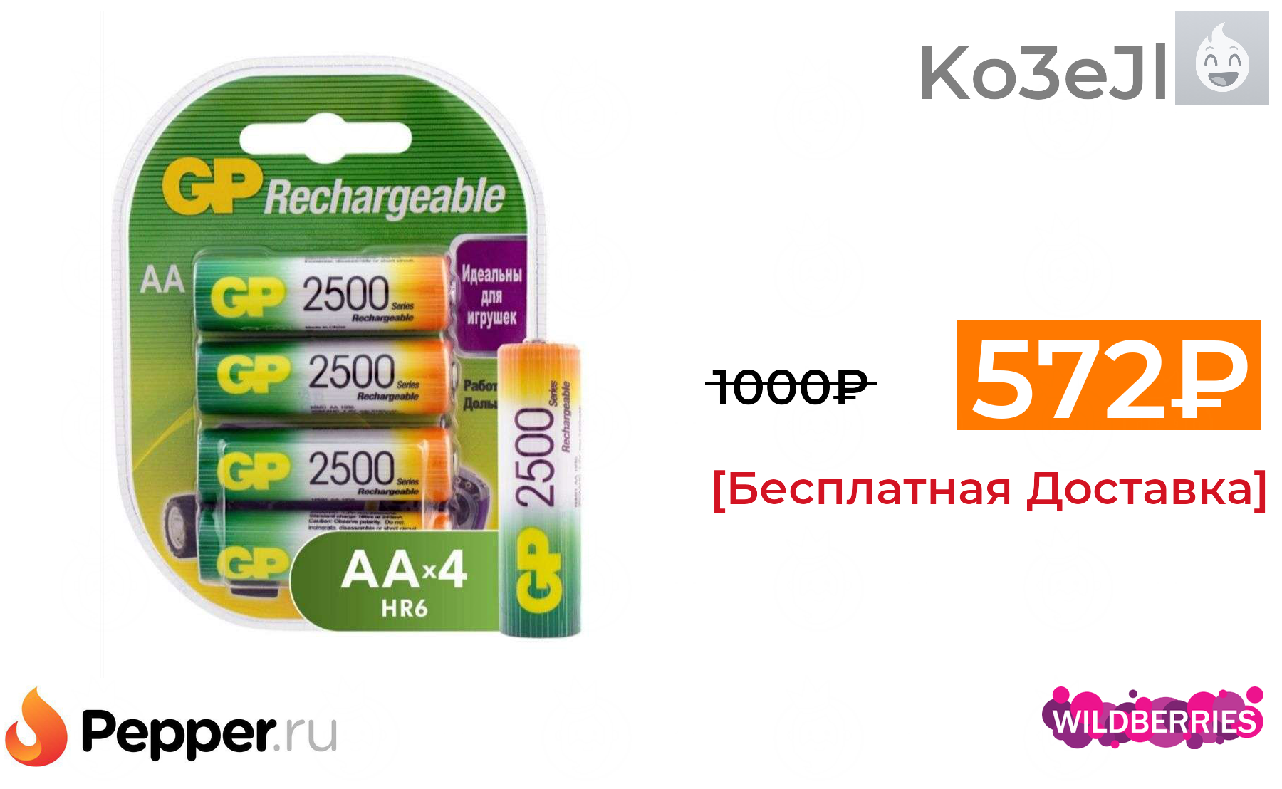 🔹Аккумуляторы GP ёмкостью 2500 мАч 4шт. 572₽ ❗️🔥(везде от 1000₽)