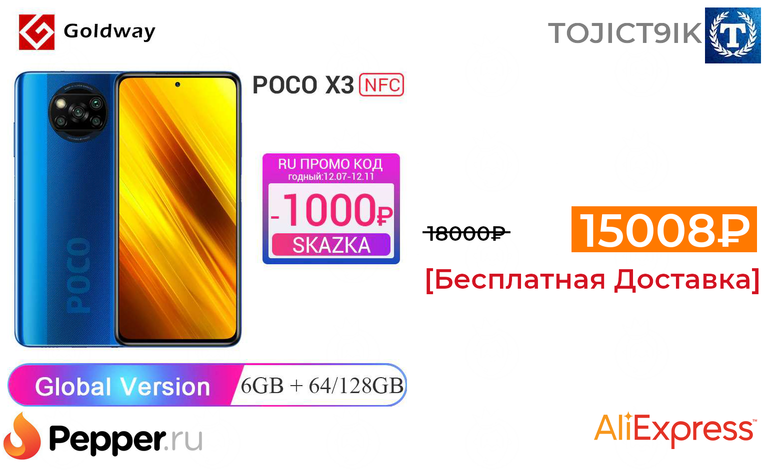 🔹Смартфон Xiaomi Poco X3 6/64GB (NFC) 15008₽ ❗️🔥(везде от 18000₽)