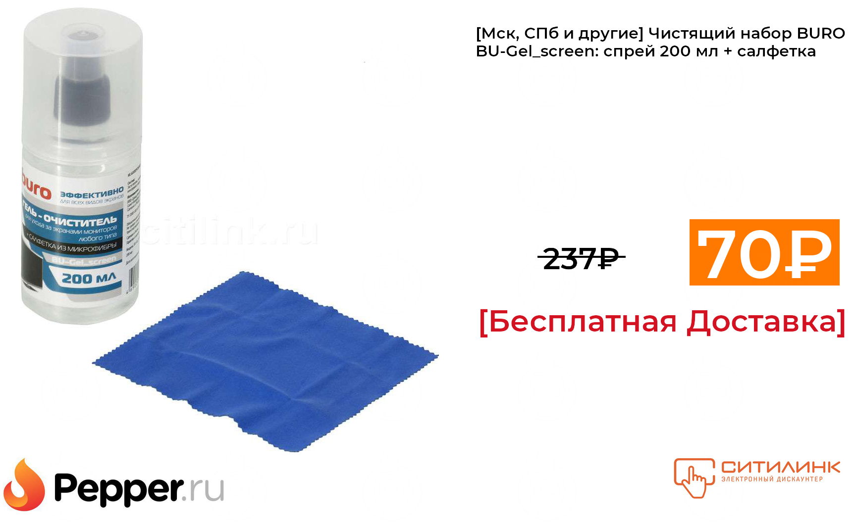 🔹[Мск, СПб и другие] Чистящий набор BURO BU-Gel_screen: спрей 200 мл + салфетка 70₽ ❗️🔥(везде от 237₽)