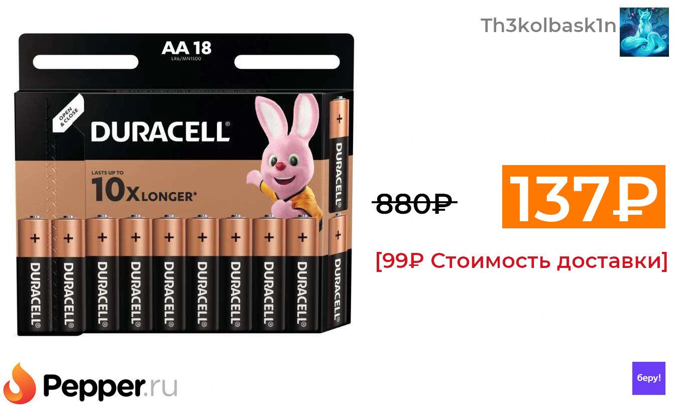 🔹Батарейки Duracell Basic AA 18 шт блистер 137₽ ❗️🔥(везде от 880₽)