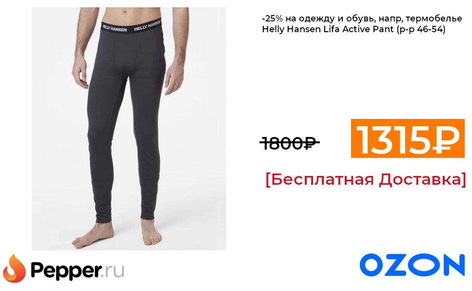 🔹-25% на одежду и обувь, напр, термобелье Helly Hansen Lifa Active Pant (р-р 46-54) 1315₽ ❗️🔥(везде от 1800₽)