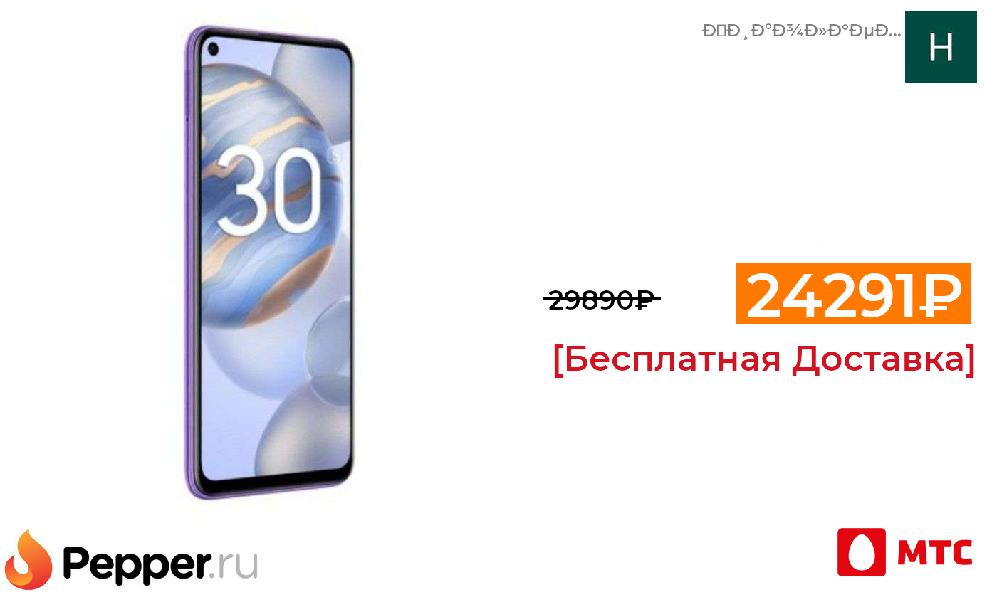 🔹Смартфон Honor 30 8/128Gb зелёный и чёрный 24291₽ ❗️🔥(везде от 29890₽)