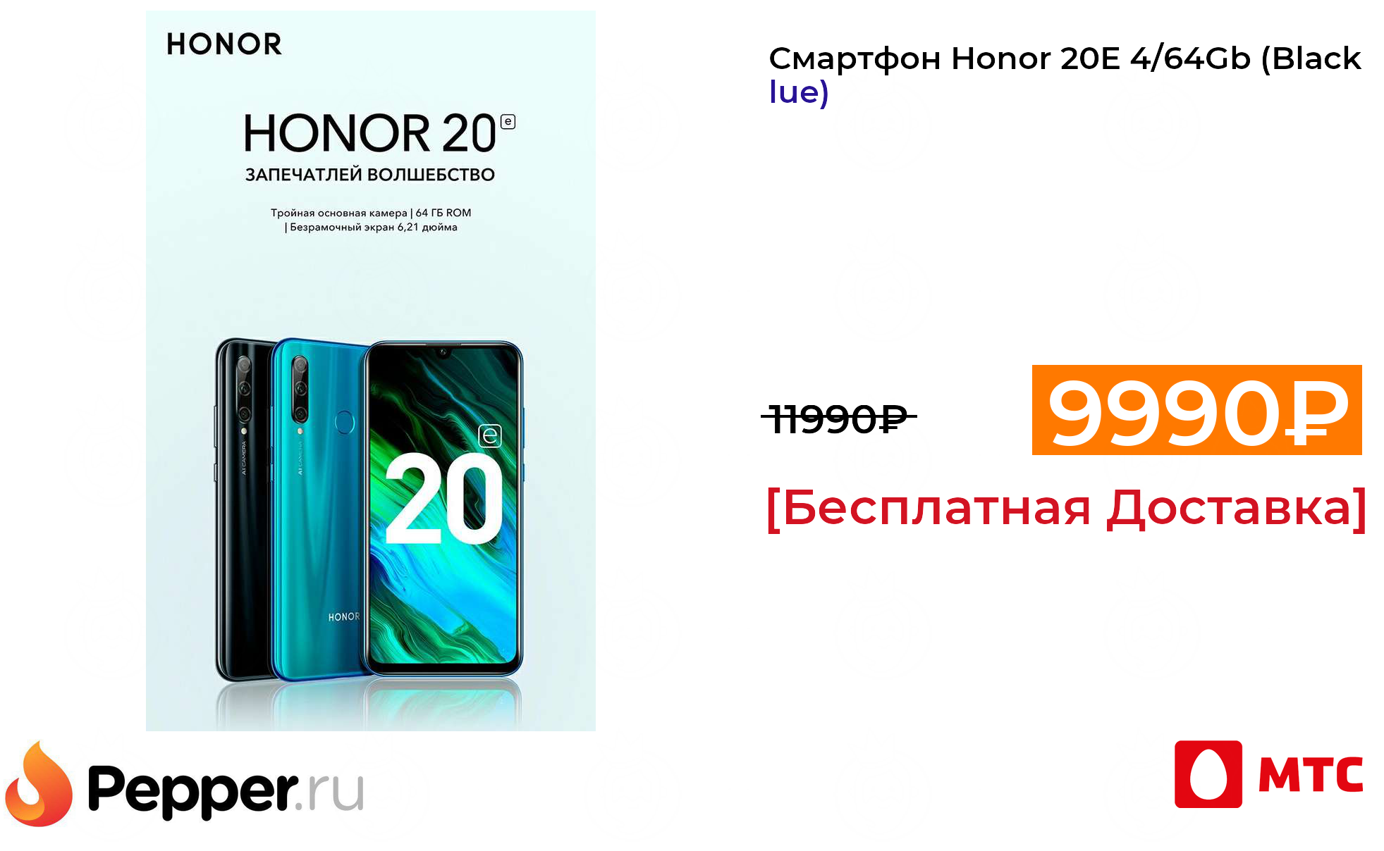 🔹Смартфон Honor 20E 4/64Gb (Black\Blue) 9990₽ ❗️🔥(везде от 11990₽)