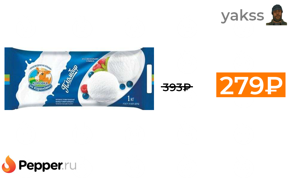 🔹Мороженое пломбир 1кг "Коровка из Кореновки" 279₽ ❗️🔥(везде от 393₽)