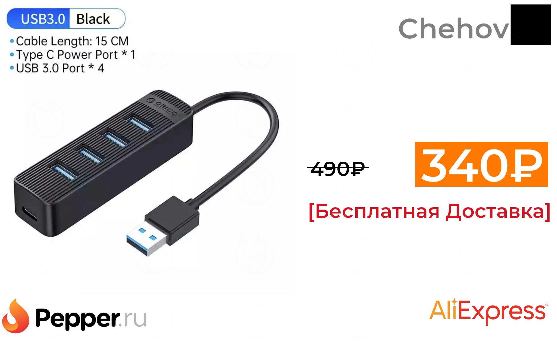 🔹USB концентратор Orico 4USB 3.0 + Type C 340₽ ❗️🔥(везде от 490₽)