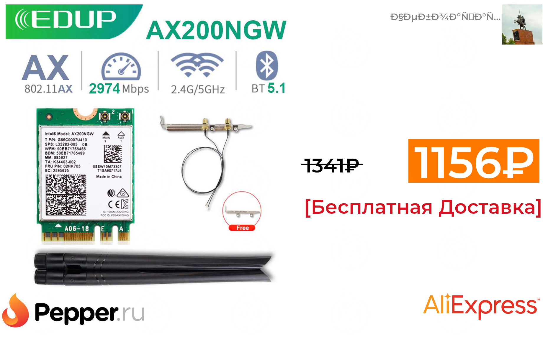 🔹Модуль Wi-Fi Intel Wi-Fi 6 AX200 + антенны 1156₽ ❗️🔥(везде от 1341₽)