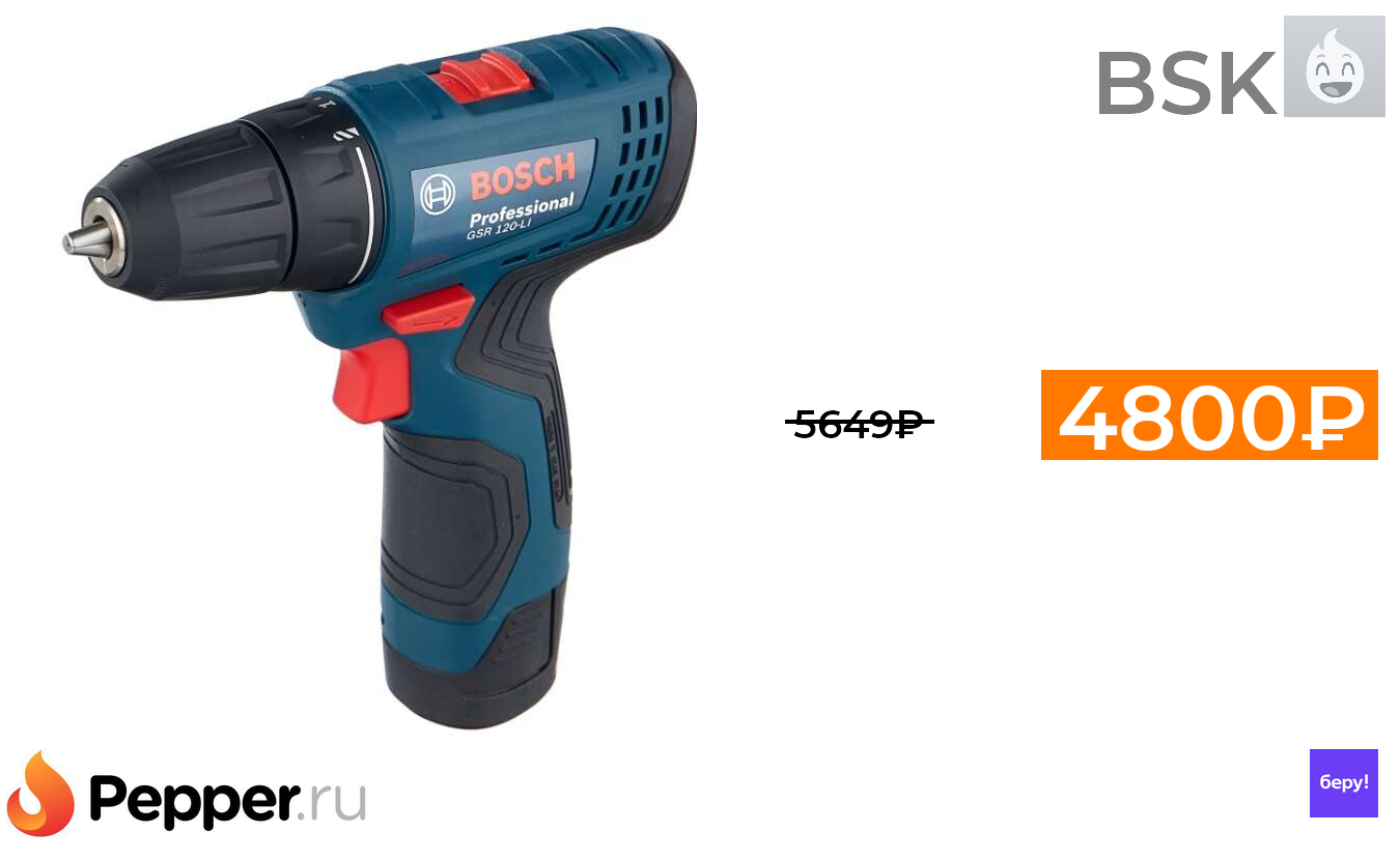 🔹Аккумуляторная дрель-шуруповерт BOSCH GSR 120-LI Li-Ion 2.0 А-ч 12 В х2 кейс 30 Н·м синий/черный 4800₽ ❗️🔥(везде от 5649₽)