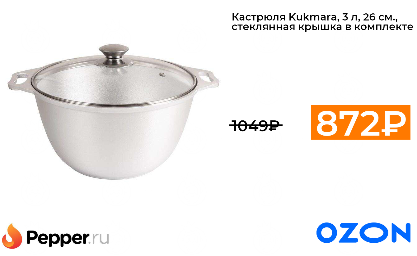 🔹Кастрюля Kukmara, 3 л, 26 см., стеклянная крышка в комплекте 872₽ ❗️🔥(везде от 1049₽)