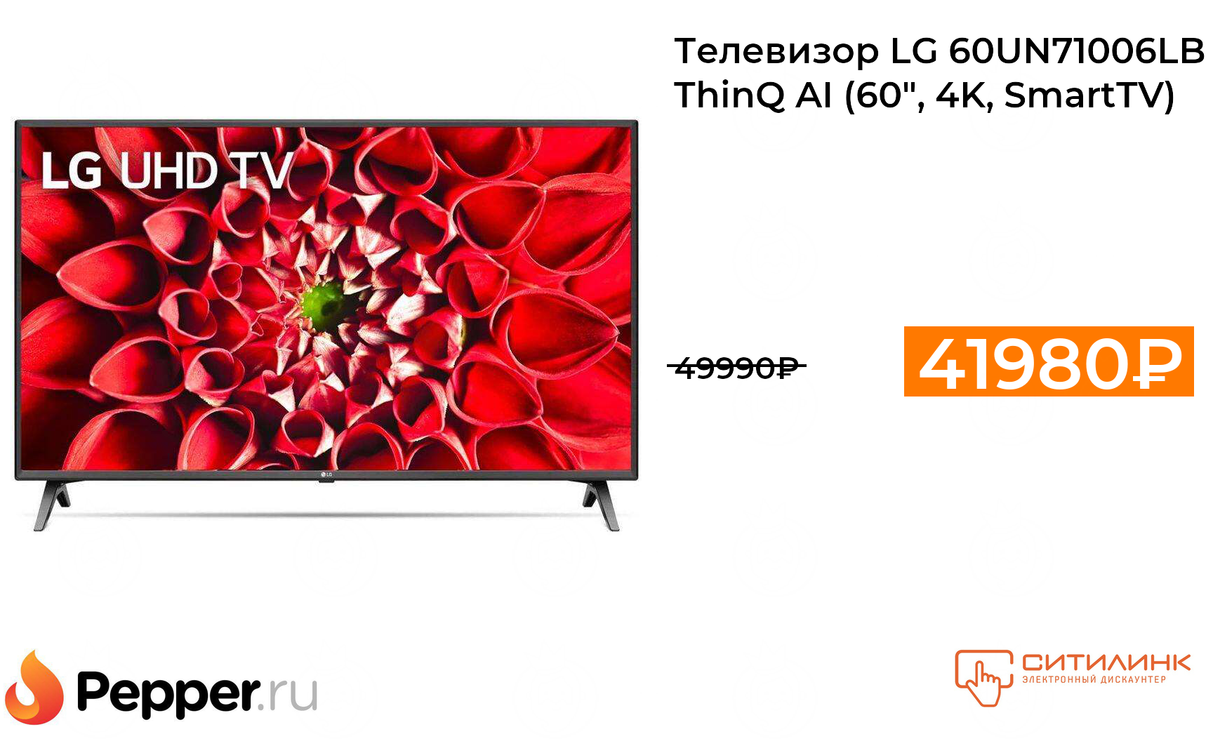 🔹Телевизор LG 60UN71006LB ThinQ AI (60", 4K, SmartTV) 41980₽ ❗️🔥(везде от 49990₽)