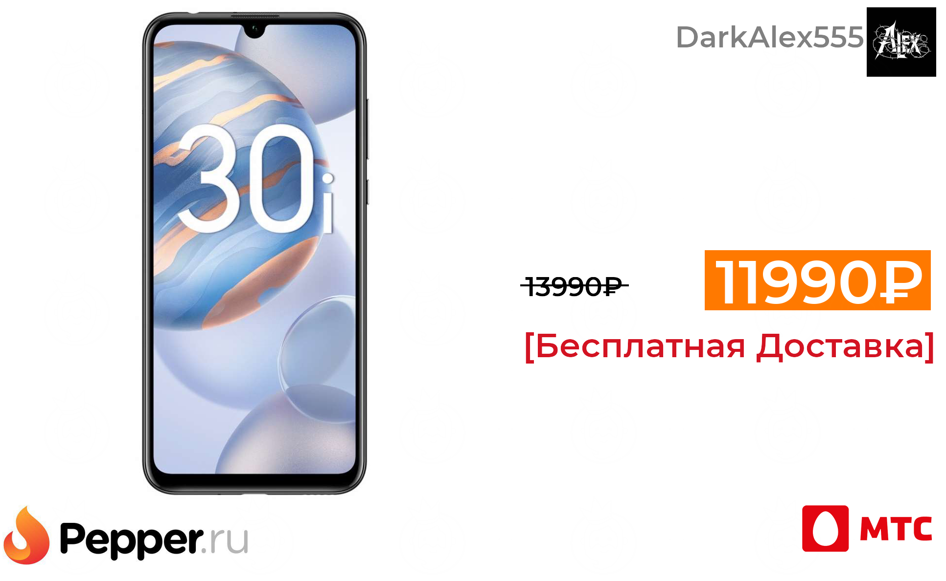🔹Смартфон Honor 30I 4/128Gb (при покупке аксессуара) 11990₽ ❗️🔥(везде от 13990₽)