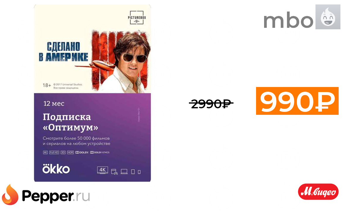 🔹Скидка 2000₽ на годовую подписку Okko, IVI или Megogo (напр Okko Оптимум на 12 месяцев) ❗️🔥(везде от 2990₽)