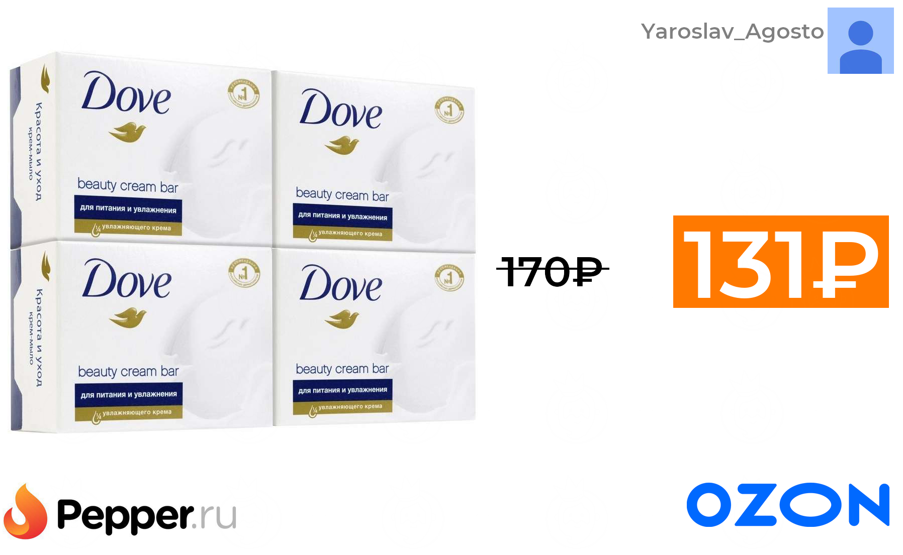 🔹Мыло Dove 100 грамм (цена за 4 шт. при покупке 2 упаковок) 131₽ ❗️🔥(везде от 170₽)