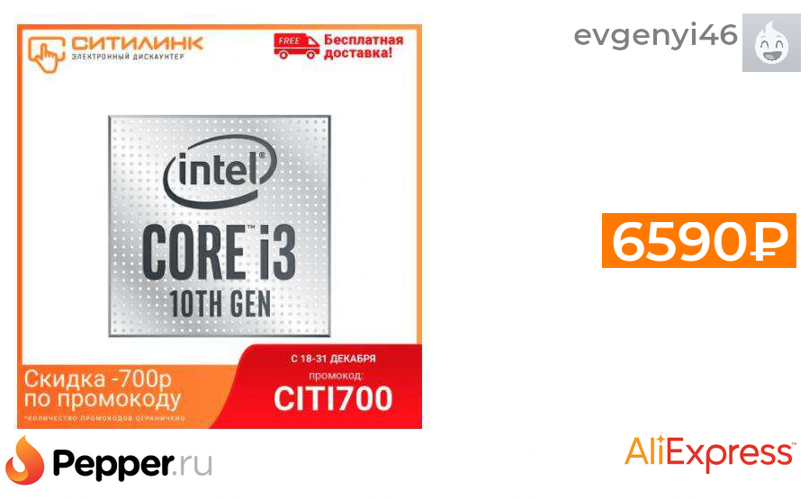 🔹Процессор INTEL Core i3 10100F, LGA 1200, OEM 6590₽ ❗️🔥