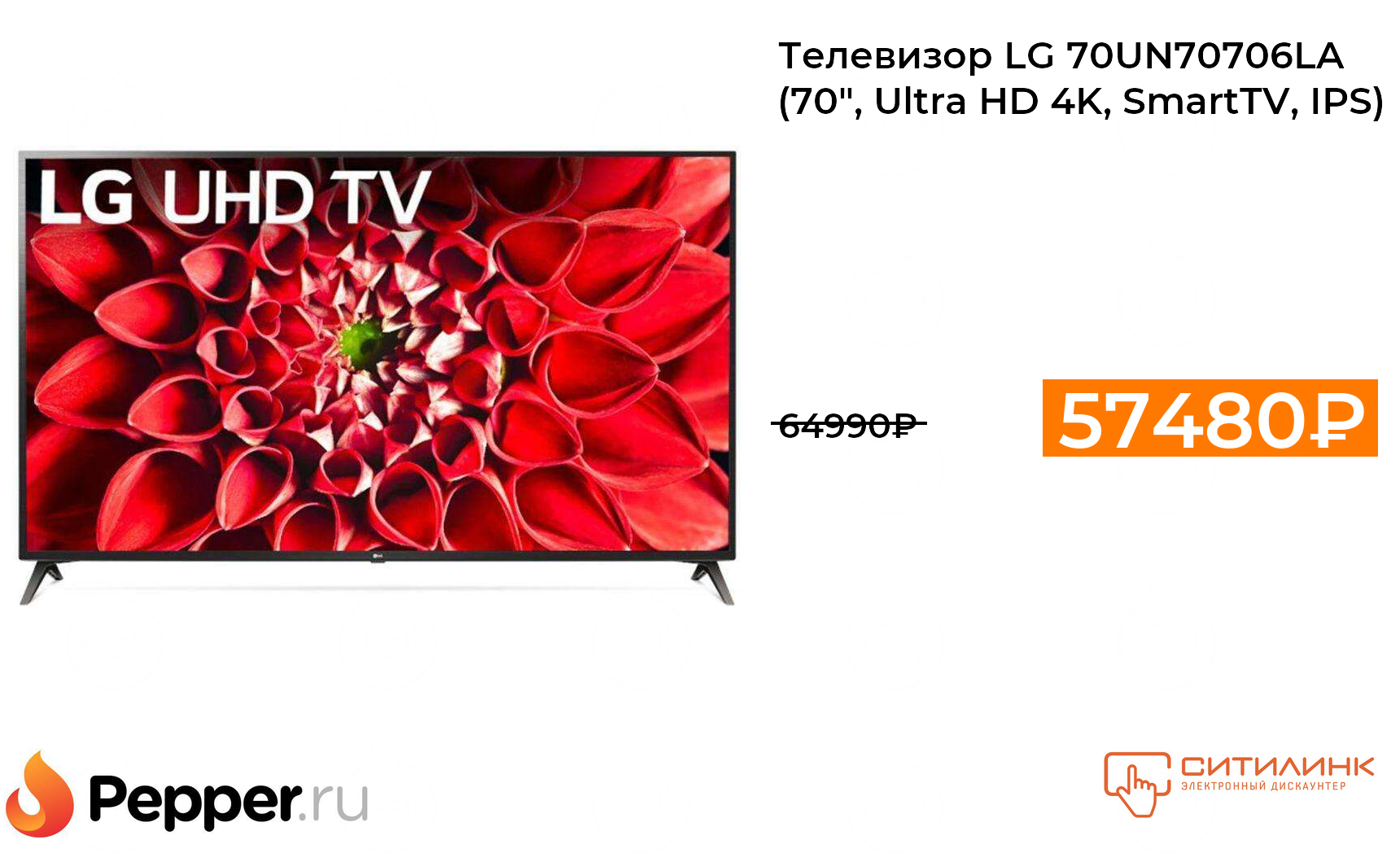 🔹Телевизор LG 70UN70706LA (70", Ultra HD 4K, SmartTV, IPS) 57480₽ ❗️🔥(везде от 64990₽)