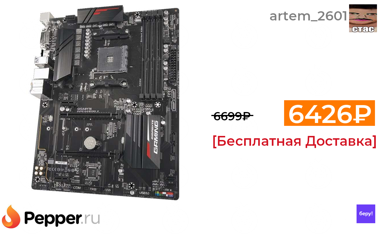 🔹Материнская плата GIGABYTE B450 Gaming X + 1286 баллов. 6426₽ ❗️🔥(везде от 6699₽)