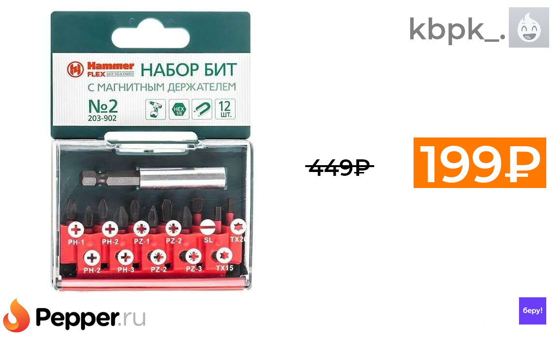 🔹Набор бит Hammerflex (12 предм.) 203-902 199₽ ❗️🔥(везде от 449₽)