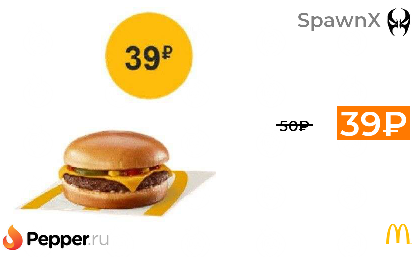 🔹Чизбургер за 39р. в McDonald's (личный код в приложении) 39₽ ❗️🔥(везде от 50₽)
