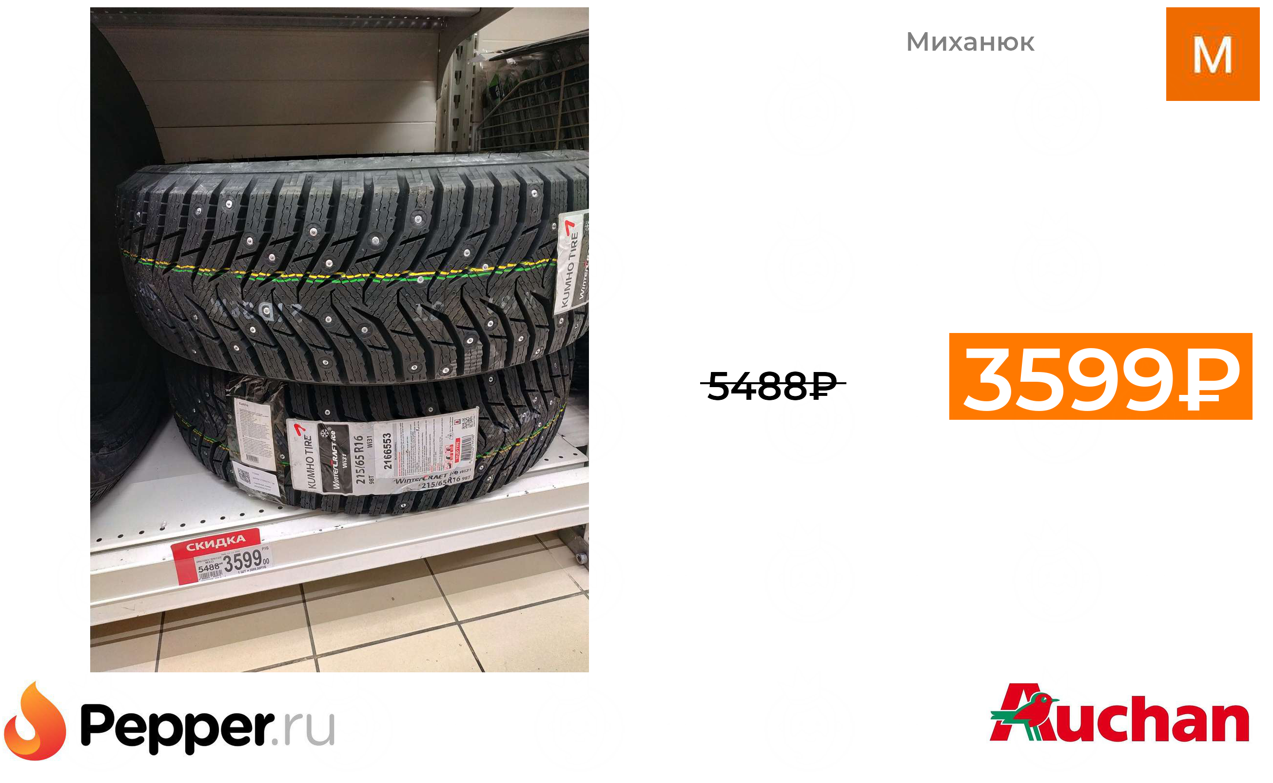 🔹[Аксай] Шины зимние Kumho WinterCraft Ice 215/65 16 3599₽ ❗️🔥(везде от 5488₽)
