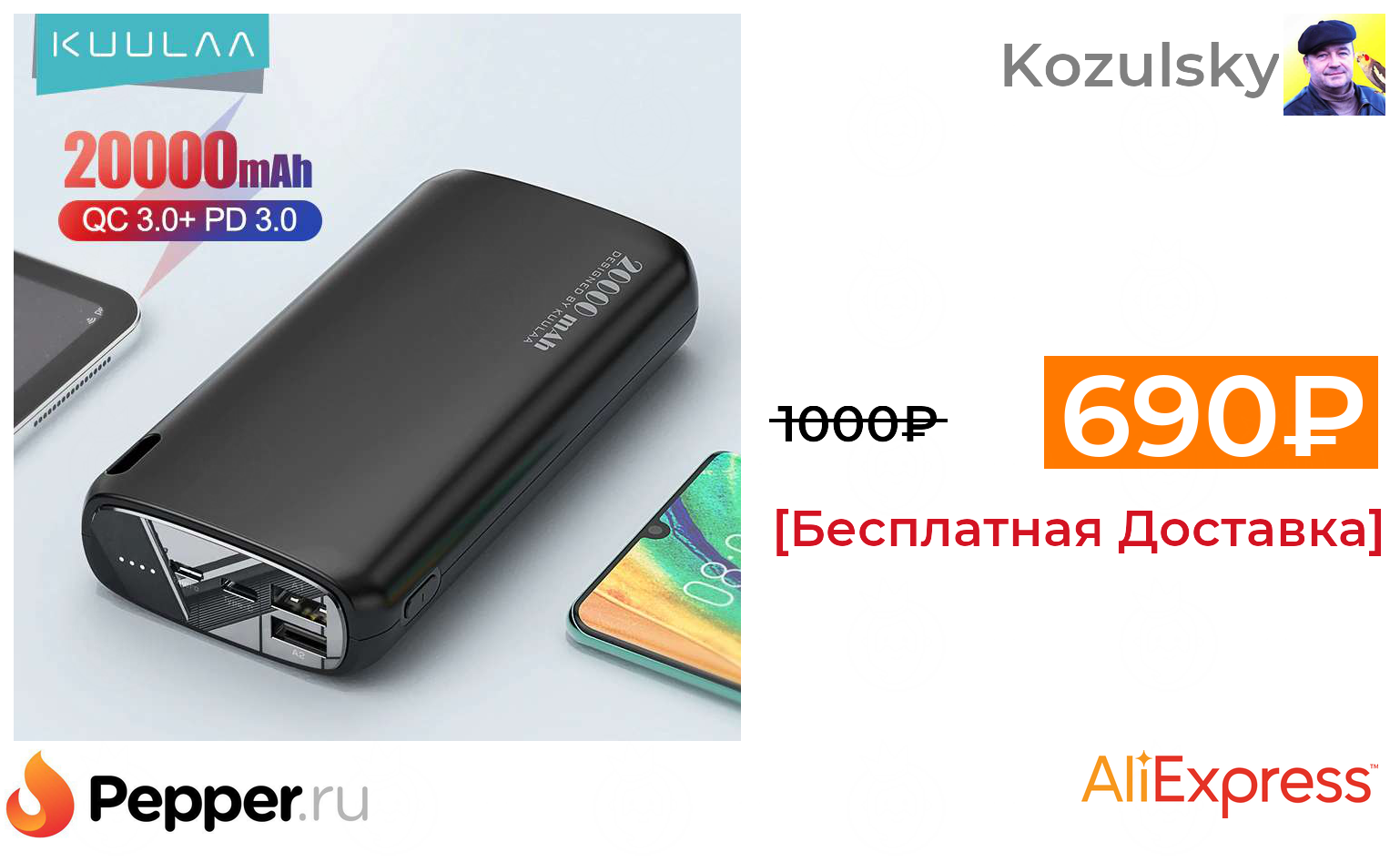 🔹Power bank KUULAA 20 000mah Type-C 2.1а 690₽ ❗️🔥(везде от 1000₽)
