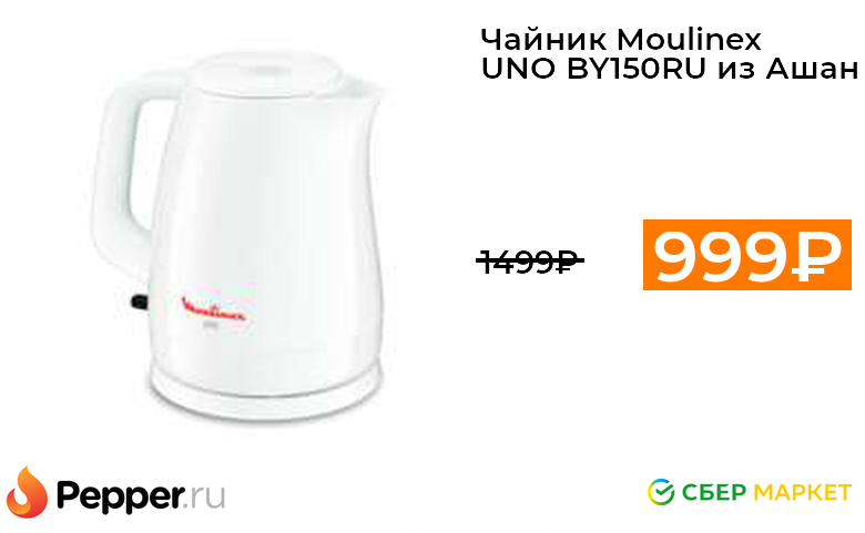 🔹Чайник Moulinex UNO BY150RU из Ашан 999.95₽ ❗️🔥(везде от 1499₽)