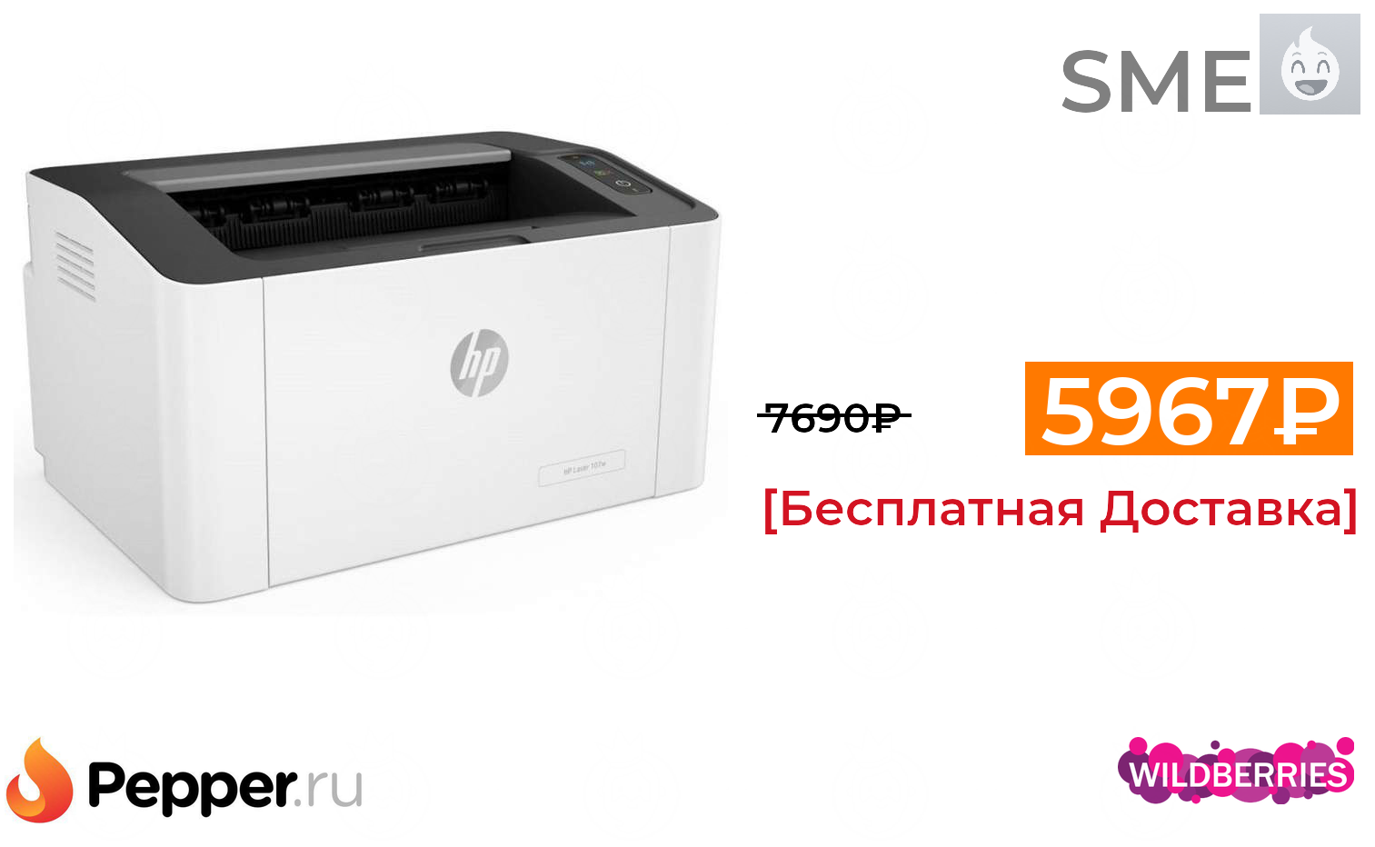 🔹Монохромный лазерный принтер HP LaserJet Laser 107W (4ZB78A) 5967₽ ❗️🔥(везде от 7690₽)