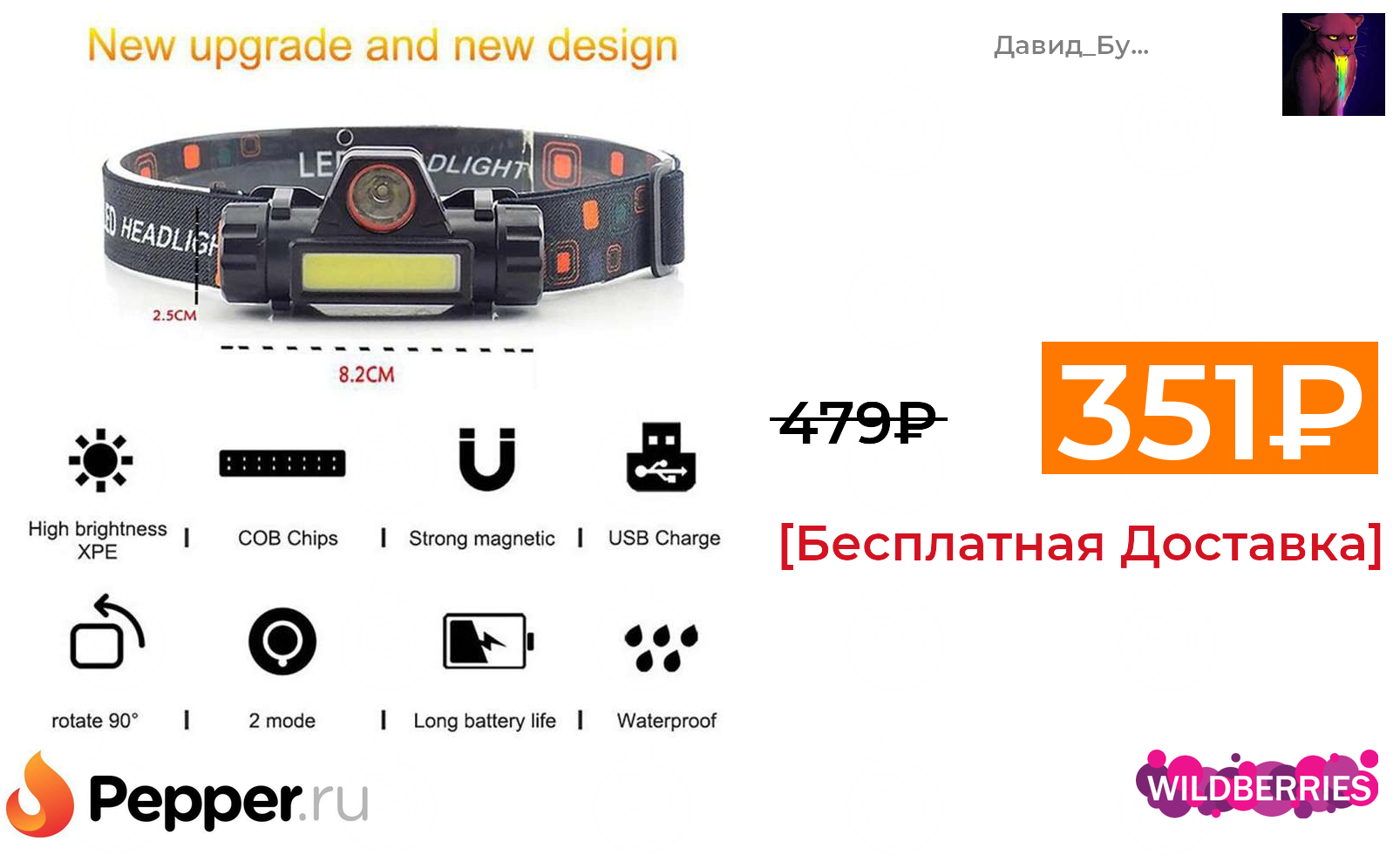 🔹Фонарь налобный Camelion 114₽ ❗️🔥(везде от 170₽)