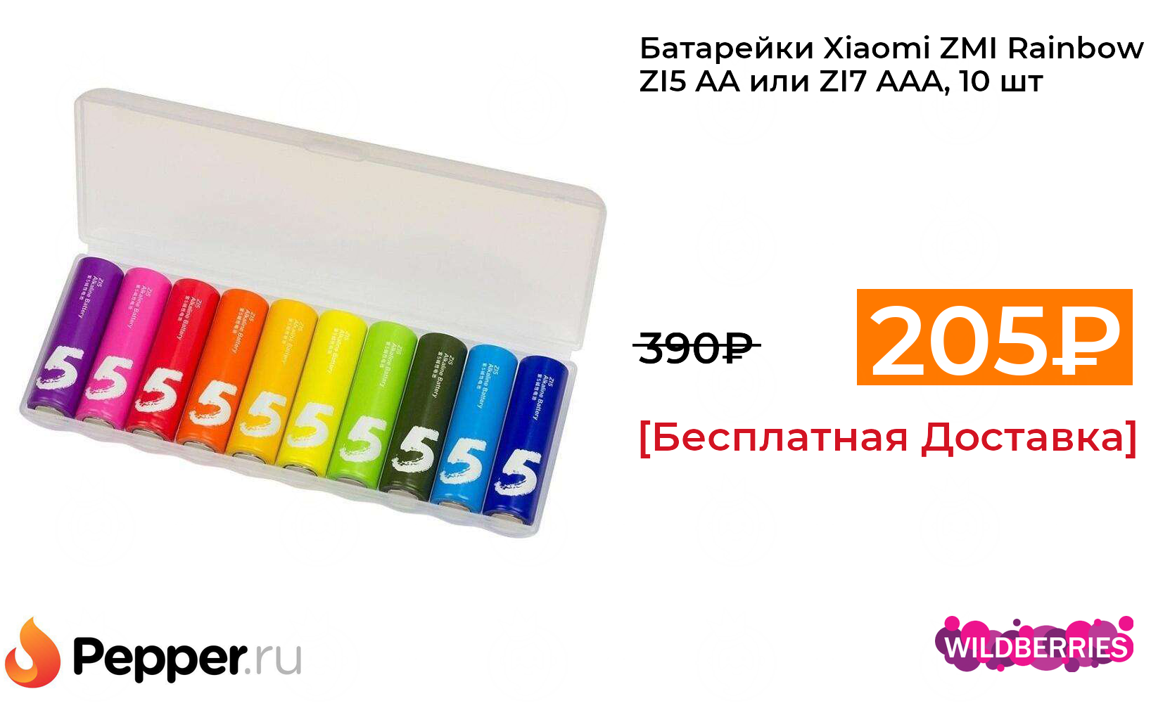 🔹Батарейки Xiaomi ZMI Rainbow ZI5 AA или ZI7 AAA, 10 шт 205₽ ❗️🔥(везде от 390₽)