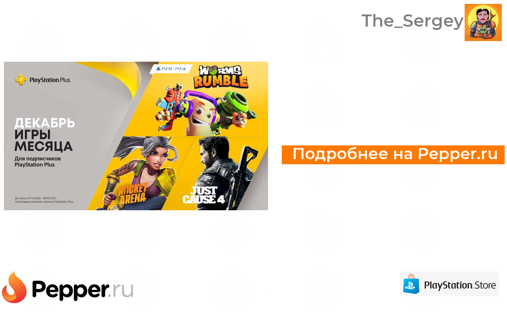 🔹PlayStation Plus - бесплатные игры декабря по подписке: Just Cause 4, Rocket Arena и Worms Rumble + сетевой режим на 1 день ❗️🔥