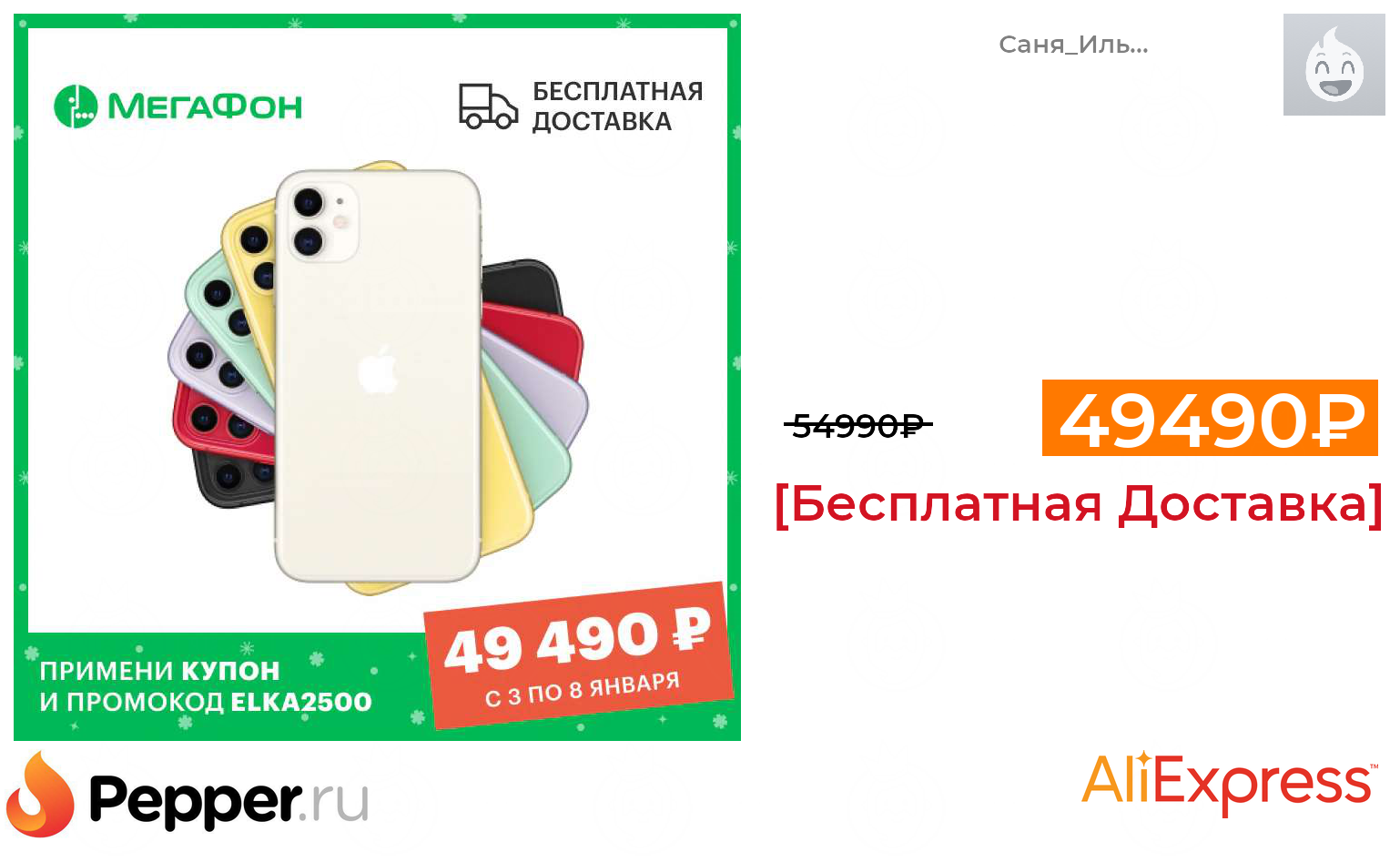 🔹Смартфон Apple IPhone 11 64GB (Tmall, Мегафон, 03.01-08.01) 49490₽ ❗️🔥(везде от 54990₽)
