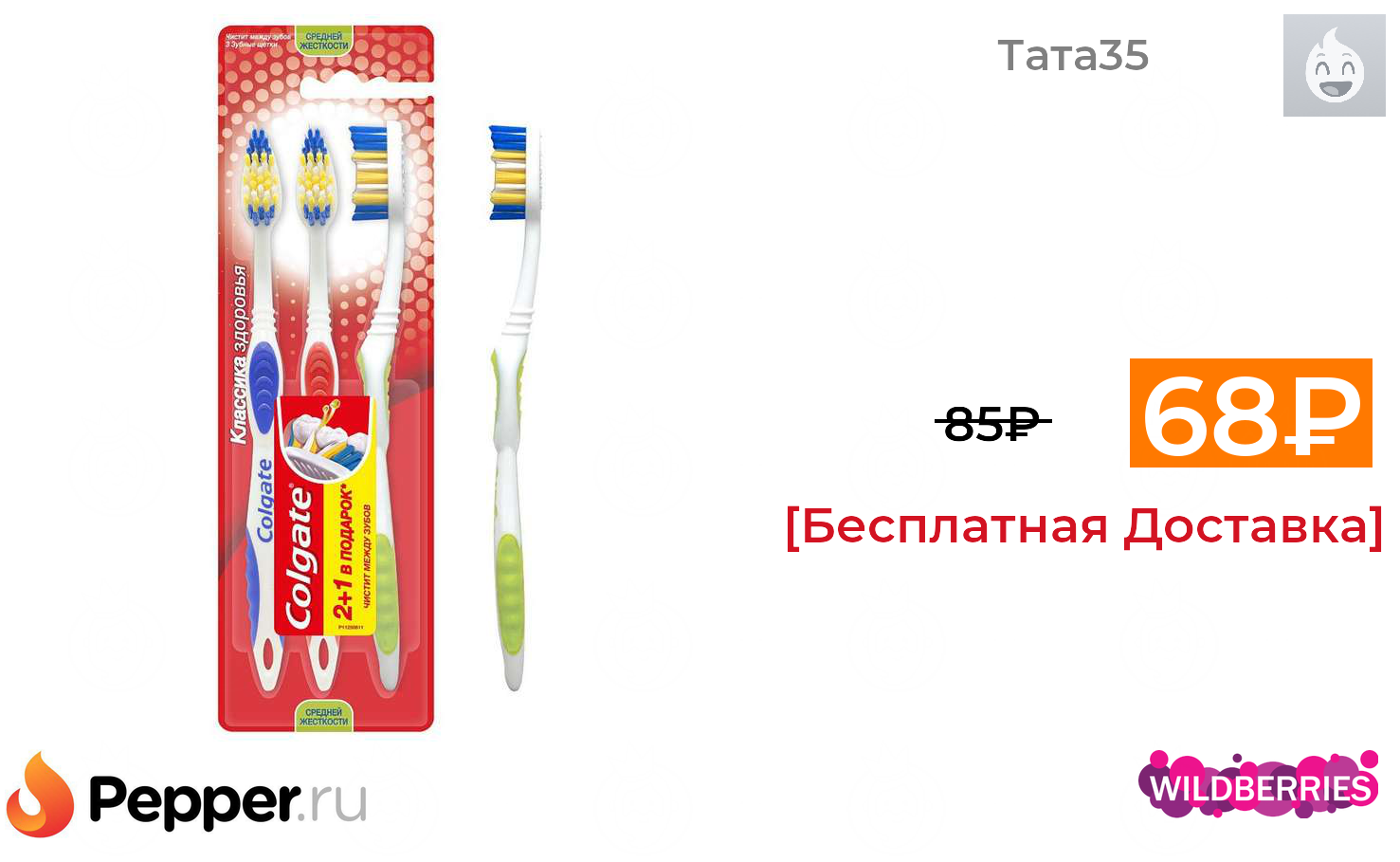 🔹Зубная щетка COLGATE Классика Здоровья многофункциональная , средней жесткости, промоупаковка 2+1 68₽ ❗️🔥(везде от 85₽)